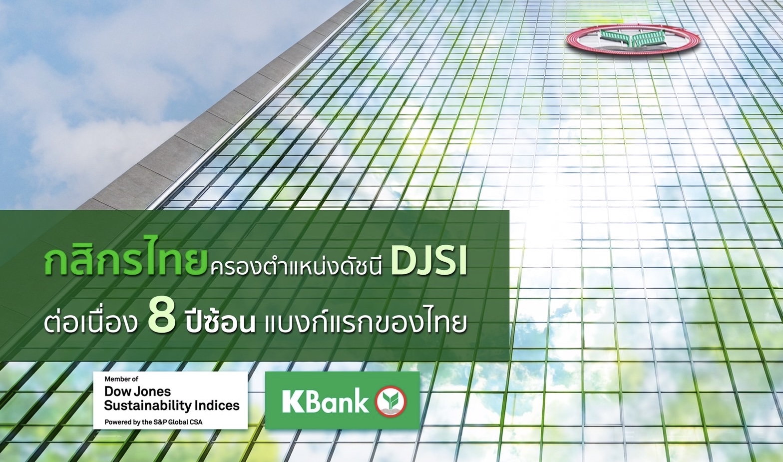 ธนาคารกสิกรไทยครองตำแหน่งในดัชนีความยั่งยืนดาวน์โจนส์ ประจำปี 2566 หรือ Dow Jones Sustainability Indices (DJSI) 2023 ต่อเนื่องเป็นปีที่ 8 เป็นธนาคารแรกของไทย ทั้งในระดับโลก (World) และกลุ่มตลาดเกิดใหม่ (Emerging Markets) โดยระหว่างปี 2565-2566 ธนาคารอัดฉีดเม็ดเงินเพื่อความยั่งยืนไปแล้วราว 53,000 ล้านบาท พร้อมเดินหน้าเชื่อมต่อภาคส่วนสำคัญในระบบนิเวศ เพื่อตอบโจทย์ความยั่งยืนในระยะยาวแก่ระบบเศรษฐกิจและสังคมของประเทศ