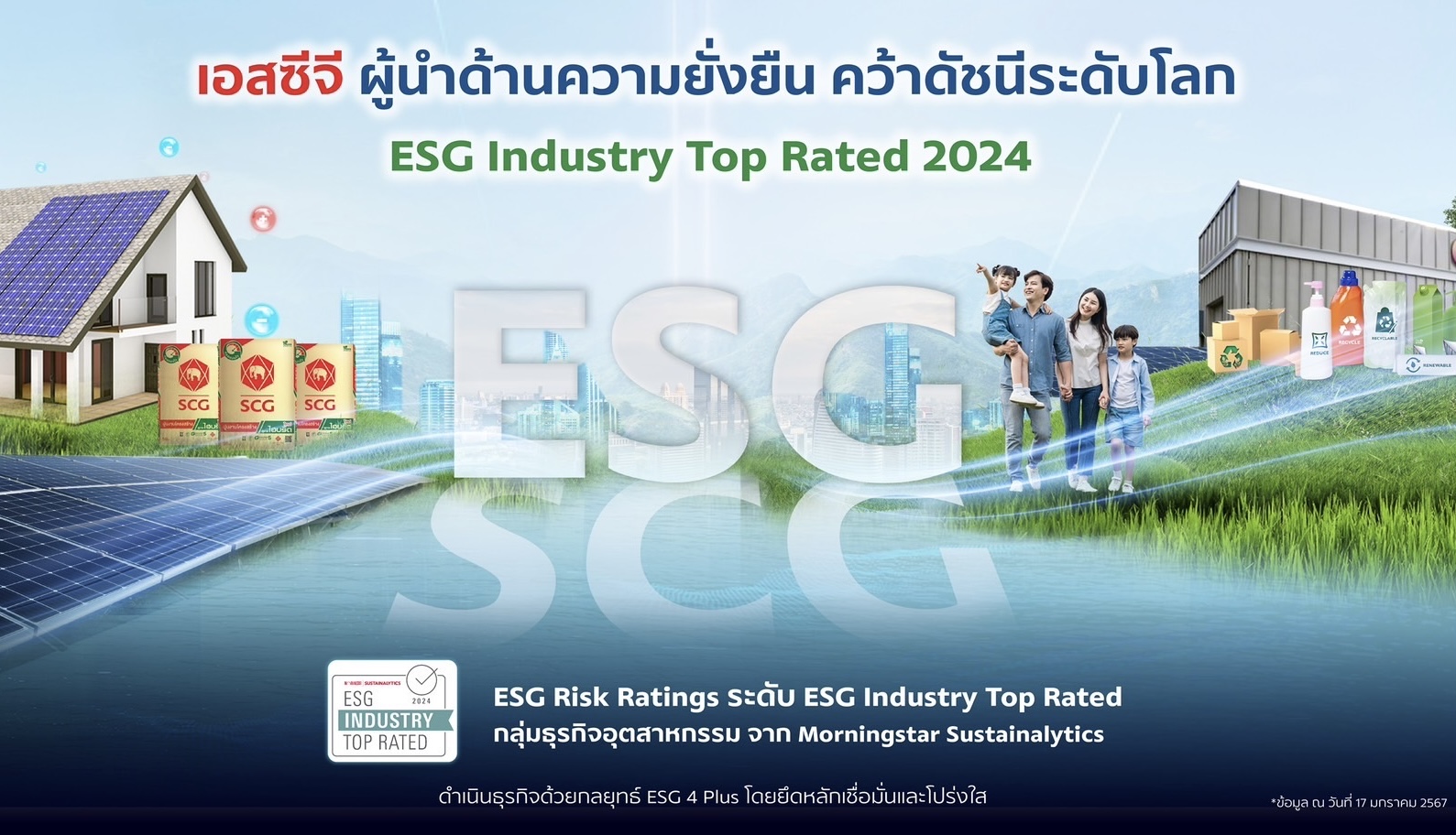 เอสซีจี ผู้นำด้านความยั่งยืนระดับโลก ได้รับการจัดอันดับจาก Morningstar Sustainalytics เป็น ESG Industry Top Rated 2024 ลำดับที่ 1 จาก 125 บริษัทในกลุ่ม Industrial Conglomerate ทั่วโลก ณ วันที่ 17 มกราคม 2567 สะท้อนถึงผลการดำเนินงานที่โดดเด่นด้านความยั่งยืนระดับสากล ด้วยนวัตกรรม โซลูชันรักษ์โลก ด้วยกลยุทธ์ ESG 4 Plus (มุ่ง Net Zero–Go Green–Lean เหลื่อมล้ำ–ย้ำร่วมมือ โดยยึดหลักเชื่อมั่นและโปร่งใส)