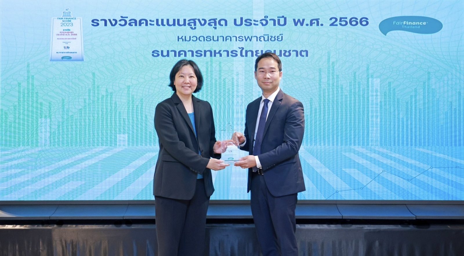 กรุงเทพฯ, 8 กุมภาพันธ์ 2567 — ทีเอ็มบีธนชาต หรือ ทีทีบี ตอกย้ำความสำเร็จเส้นทางสู่ “การธนาคารเพื่อความยั่งยืน” (Sustainable Banking) ครองอันดับหนึ่งด้วยคะแนนสูงสุดต่อเนื่องเป็นปีที่ 5 ในการประเมินนโยบายด้าน ESG ของธนาคาร จากการประเมินโดย Fair Finance Thailand ประจำปี 2566 ซึ่งมีความโดดเด่นในหมวดการคุ้มครองผู้บริโภคที่ธนาคารมีนโยบายจัดการข้อร้องเรียนของลูกค้าอย่างเป็นขั้นตอน และหมวดการขยายบริการทางการเงินที่ครอบคลุมเข้าถึงลูกค้าทุกกลุ่ม เพื่อเพิ่มความสะดวกสบายและเพื่อให้ลูกค้ามีชีวิตทางการเงินที่ดีขึ้น โดยมีนายนริศ อารักษ์สกุลวงศ์ ประธานกลุ่มกลยุทธ์องค์กรและดิจิทัล ทีเอ็มบีธนชาต เป็นผู้รับมอบรางวัลจากนางสาวสฤณี อาชวานันทกุล หัวหน้าคณะวิจัย แนวร่วมการเงินที่เป็นธรรมประเทศไทย และถือเป็นอีกหนึ่งรางวัลแห่งความภาคภูมิใจของธนาคารในการผลักดันให้ทุกภาคส่วนในองค์กรร่วมกันมุ่งมั่นสร้างการเติบโตที่ยั่งยืนอย่างสมดุลในทุกมิติ ตามกรอบ B+ESG ผสานธุรกิจและความยั่งยืนเป็นเนื้อเดียวกัน ณ โรงแรม S31 Sukhumvit Hotel เมื่อเร็ว ๆ นี้