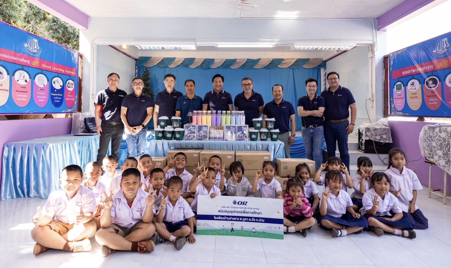ในโอกาสนี้ คณะผู้บริหาร OR ยังได้มอบถังขยะ โครงการ แยก แลก ยิ้ม ให้กับโรงเรียนดรุณวิทยา ตำบลในเวียง อำเภอเมืองน่าน จังหวัดน่าน เพื่อส่งเสริมความรู้ความเข้าใจในเรื่องการจัดการขยะที่ต้นทาง และสร้างความตระหนักด้านการรักษาสิ่งแวดล้อม ที่จะนำไปสู่การพัฒนาคุณภาพชีวิตทางด้านสุขอนามัยสิ่งแวดล้อมที่ดี นอกจากนี้ ยังมอบอุปกรณ์ที่จำเป็นเพื่อการศึกษาสำหรับนักเรียน โรงเรียนบ้านปางยาง ตำบลภูคา อำเภอปัว จังหวัดน่าน เพื่อสร้างโอกาสให้นักเรียนได้เรียนรู้อย่างมีคุณภาพ และลดความเหลื่อมล้ำ อันจะนำไปสู่การยกระดับคุณภาพชีวิต เพื่อให้ทุกภาคส่วนเติบโตอย่างยั่งยืนและมีคุณภาพชีวิตที่ดีไปด้วยกัน ซึ่งเป็นไปตามวิสัยทัศน์ของ OR “Empowering All Toward Inclusive Growth” เพื่อเติมเต็มโอกาส เพื่อทุกการเติบโตร่วมกันอย่างแท้จริง
