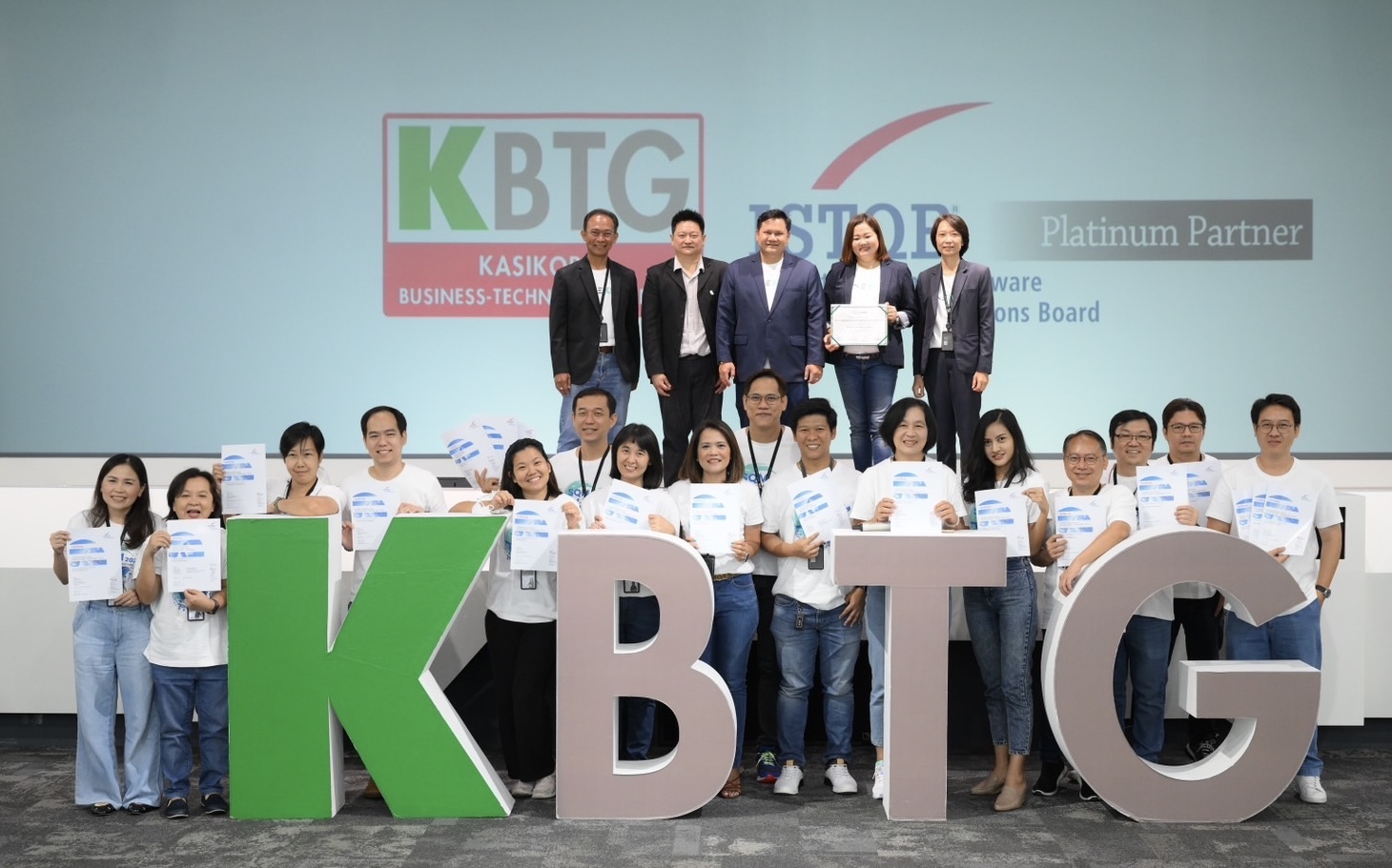 นายเรืองโรจน์ พูนผล (ขวา) ประธานกลุ่มบริษัท กสิกร บิซิเนส-เทคโนโลยี กรุ๊ป (KBTG) และนายสิทธิชัย อุดมโชคปิติ (ซ้าย) ประธานสมาชิกประจำประเทศไทยของ International Software Testing Qualifications Board (ISTQB) องค์กรทดสอบคุณภาพซอฟต์แวร์ระดับโลก ซึ่งเป็นองค์กรอิสระสากลไม่แสวงหากำไรและมีอาสาสมัครที่เป็นสมาชิกกว่า 60 ประเทศทั่วโลก ร่วมพิธีลงนามการเข้าร่วมเป็นพันธมิตรระหว่างกัน โดย KBTG ถือเป็นองค์กรแรกของไทยที่ได้รับการรับรองวิทยฐานะจาก ISTQB ในระดับ Platinum Partner จากความร่วมมือในการตรวจสอบมาตรฐานผลิตภัณฑ์อย่างต่อเนื่อง รวมทั้งการพัฒนาทักษะพนักงาน KBTG ทุกคนในหน่วยงานบริหารจัดการคุณภาพซอฟต์แวร์กว่า 200 คน ผ่านการอบรม สอบวัดระดับ จนได้รับประกาศนียบัตรด้านการบริหารจัดการการทดสอบซอฟต์แวร์ทั้งในระดับพื้นฐานและระดับแอดวานซ์ รวมแล้วกว่า 300 ประกาศนียบัตร ตอกย้ำยุทธศาสตร์ในการเป็นสุดยอดองค์กรเทคโนโลยีในระดับภูมิภาคเอเชียตะวันออกเฉียงใต้และบทบาทการเป็นผู้เชี่ยวชาญด้าน World-class Technology ที่ให้ความสำคัญกับการส่งเสริมศักยภาพทีมงาน และการรักษาคุณภาพของซอฟต์แวร์เพื่อส่งมอบผลิตภัณฑ์และบริการที่ได้มาตรฐานให้แก่ลูกค้าของธนาคารกสิกรไทย ผลักดันมาตรฐานการทดสอบคุณภาพซอฟต์แวร์ทั้งในระดับประเทศและระดับสากล ณ อาคาร KBTG เมื่อเร็ว ๆ นี้