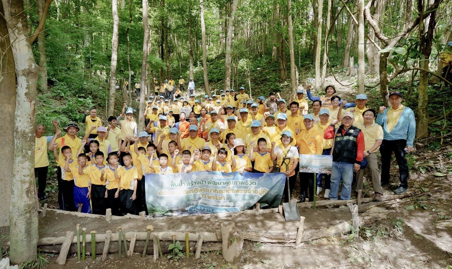 ฟื้นน้ำ สร้างป่า – คืนสมดุลให้ระบบนิเวศจากต้นน้ำสู่ปลายน้ำ พร้อมรักษาความหลากหลายทางชีวภาพ ยึดหลัก “หาน้ำได้ เก็บน้ำไว้ ใช้น้ำเป็น” เพื่อชุมชนยั่งยืน มีน้ำกิน น้ำใช้ น้ำทำเกษตรตลอดปี ด้วยการสร้างฝายชะลอน้ำ 7,210 ฝาย ปลูกและอนุรักษ์ป่าชุมชน 72,000 ไร่ ปลูกป่าโกงกางและหญ้าทะเลกว่า 200,000 ต้น เกิดชุมชนจัดการน้ำยั่งยืน 72 ชุมชน ซึ่งทั้งหมดช่วยสร้างความอุดมสมบูรณ์ให้ผืนป่าและพื้นที่ชายฝั่งทะเล ทั้งยังช่วยดูดซับก๊าซคาร์บอนไดออกไซด์จากชั้นบรรยากาศ ลดโลกร้อนพร้อมต่อยอดสู่การท่องเที่ยวเชิงนิเวศและวิถีชุมชน สร้างรายได้เศรษฐกิจหมุนเวียนในท้องถิ่น