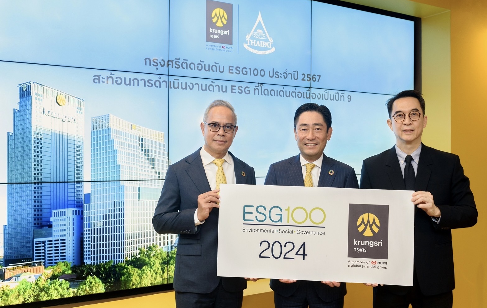 กรุงเทพฯ (2 สิงหาคม 2567) – นายเคนอิจิ ยามาโตะ (กลาง) กรรมการผู้จัดการใหญ่และประธานเจ้าหน้าที่บริหาร ธนาคารกรุงศรีอยุธยา จำกัด (มหาชน) รับมอบประกาศนียบัตร ESG100 Company จาก ดร.พิพัฒน์ ยอดพฤติการ (ขวา) ประธานสถาบันไทยพัฒน์ ในฐานะที่กรุงศรีได้รับการคัดเลือกให้เป็นหนึ่งใน 100 บริษัทจดทะเบียนที่มีผลการดำเนินงานโดดเด่นในด้านสิ่งแวดล้อม สังคม และธรรมาภิบาล จากการประเมินหลักทรัพย์จดทะเบียนทั้งสิ้น920 บริษัท โดยกรุงศรีได้รับการคัดเลือกอยู่ในรายชื่อ ESG100 ต่อเนื่องเป็นปีที่ 9 สะท้อนถึงความมุ่งมั่นในการดำเนินธุรกิจด้วยความรับผิดชอบต่อสังคมและสิ่งแวดล้อม ตอกย้ำปณิธานของกรุงศรีในการมุ่งสู่การเป็นธนาคารพาณิชย์ที่ยั่งยืนที่สุดในประเทศไทย