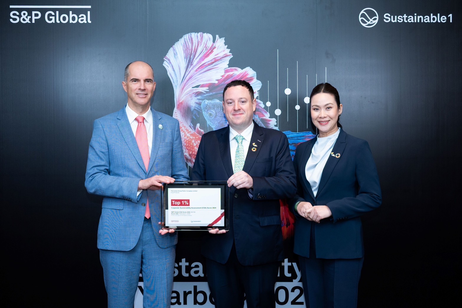 โดยไทยยูเนี่ยนได้รับคะแนนรวมสูงสุด 85จาก 100 คะแนน จากการประเมินความยั่งยืนของ S&P Global’s 2024 Corporate Sustainability Assessment (CSA) ซึ่งเป็นหนึ่งในเกณฑ์มาตรฐานด้าน ESG ที่ครอบคลุมที่สุดของโลก ในปีที่ผ่านมามีบริษัทที่ได้รับเชิญเข้ารับการประเมินกว่า 13,000 แห่ง และจากคะแนนที่ได้ทำให้ไทยยูเนี่ยนได้รับการจัดอันดับให้อยู่ในกลุ่ม Top 1% ในอุตสาหกรรมผลิตภัณฑ์อาหารของโลก ของ 2025 S&P Global Sustainability Yearbook