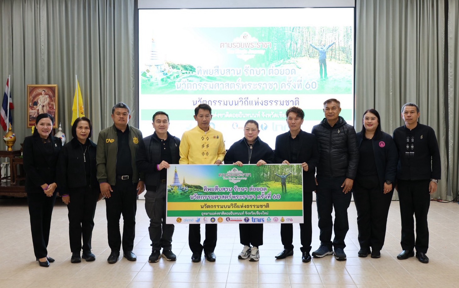 นายณฐกร ภัทรวนนท์ นายอำเภอจอมทอง (ที่ 5 จากซ้าย) เป็นประธานในพิธีเปิดโครงการ ทิพยสืบสาน รักษา ต่อยอด นวัตกรรมศาสตร์พระราชา ครั้งที่ 60 โดยมีคณะครู อาจารย์ และผู้บริหารสถานศึกษา เข้าร่วมการเรียนรู้ถอดบทเรียนการประยุกต์ใช้นวัตกรรมบนวิถีแห่งธรรมชาติ ในโอกาสนี้มี นางวิชชุดา ไตรธรรม ที่ปรึกษากรรมการผู้จัดการใหญ่ บริษัท ทิพยประกันภัย จำกัด (มหาชน) (ที่ 5 จากขวา) นายนเรศวร์ สมัครจิตร์ ผจก.ภาคเหนือ 1 บริษัท ทิพยประกันภัย จำกัด (มหาชน) (ที่ 4 จากขวา) นายอดุลย์ ดาราธรรม ที่ปรึกษาและอดีตนายกสมาคมนักเรียนเก่า AFS ประเทศไทย (ที่ 3 จากขวา) นางสาวพลอยพรรณ พลอยทับทิม พัฒนาสังคมและความมั่นคงของมนุษย์จังหวัดเชียงใหม่ (ที่ 2 จากขวา) ดร.ดนัย จันทร์เจ้าฉายประธานมูลนิธิธรรมดี (ที่ 4 จากซ้าย) นายจิรนิติ เชิงสะอาด หัวหน้าอุทยานแห่งชาติดอยอินทนนท์ (ที่ 3 จากซ้าย) นางกรวรรณ สุ่มมาตย์วัฒนธรรมจังหวัดเชียงใหม่ที่ 2 จากซ้าย) พร้อมด้วยผู้แทนสำนักงานเขตพื้นที่การศึกษาประถมศึกษาเชียงใหม่ เขต 5 และเขต 6 ตลอดจนแขกผู้มีเกียรติจากหน่วยงานภาครัฐและภาคเอกชน เข้าร่วมกิจกรรม ณ อุทยานแห่งชาติดอยอินทนนท์ จังหวัดเชียงใหม่ เมื่อเร็ว ๆ นี้